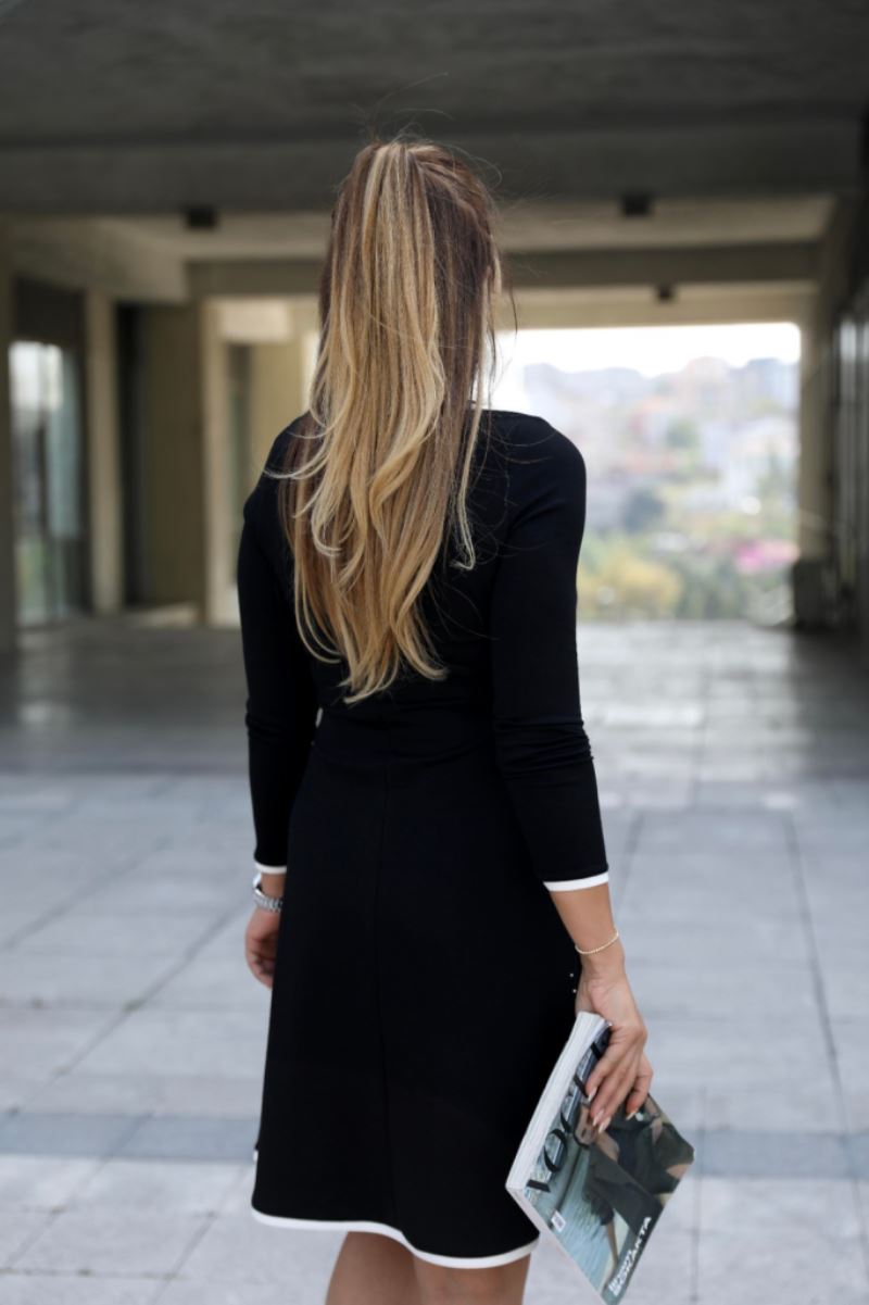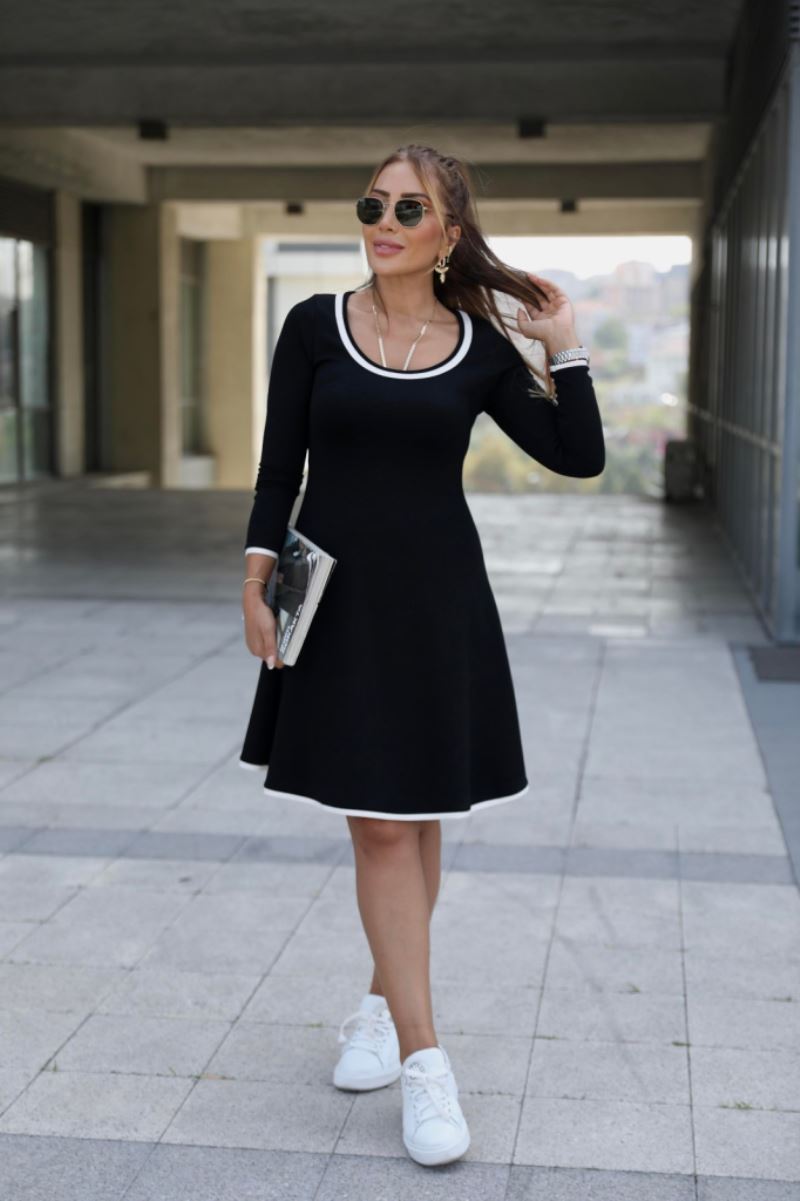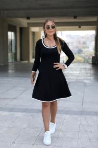 Kadın Uzun Kollu Derin Yuvarlak Yakalı Kısa Viskon Iki Iplik Elbise