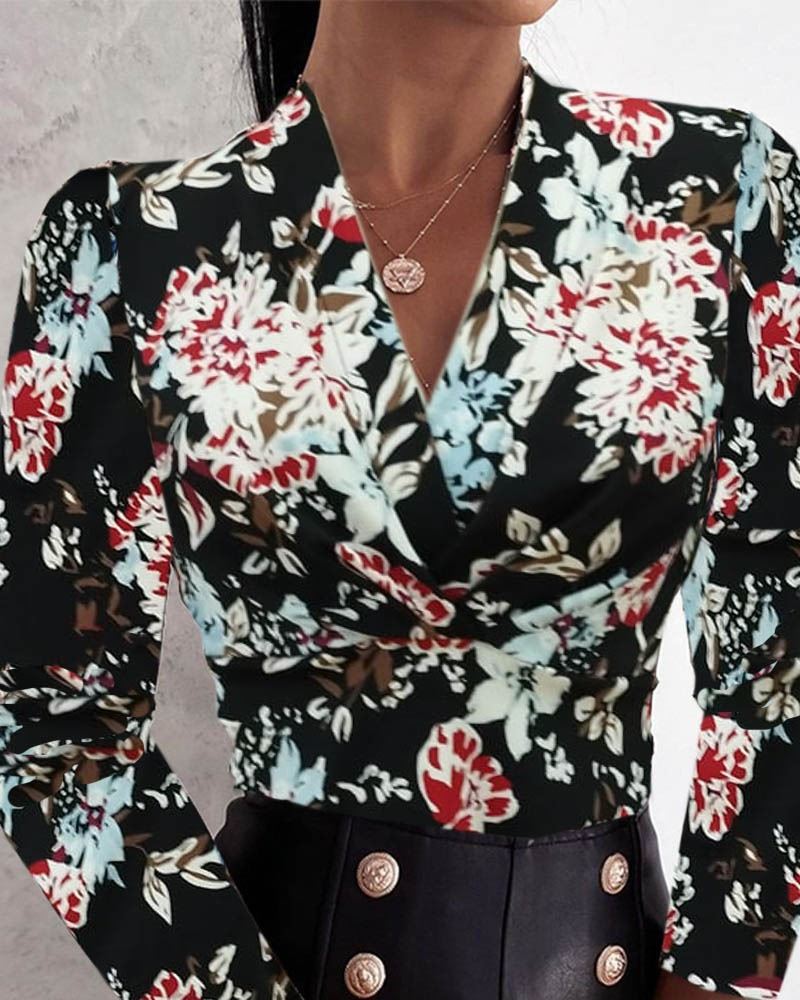 Kadın Uzun Kollu Kruvaze Yakalı Kelebek Desenli şardonlu Dalgıç Bluz