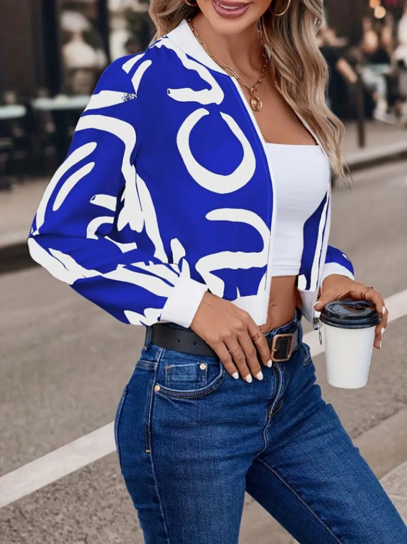 Kadın Uzun Kollu önden Fermuarlı Kısa şardonlu Dalgıç Ceket