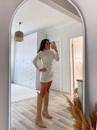 Kadın Uzun Kollu Peluş Mini Boy Elbise
