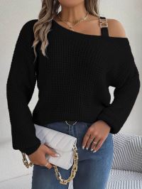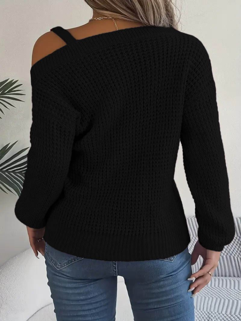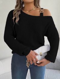 Kadın Uzun Kollu Tek Omuzu Açık Tokalı Triko Bluz