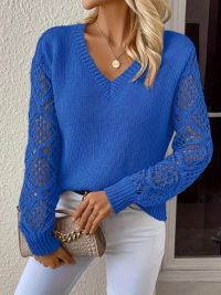 Kadın Uzun Kollu V Yaka Kol Delikli Baklava Desen Detaylı Triko Kazak