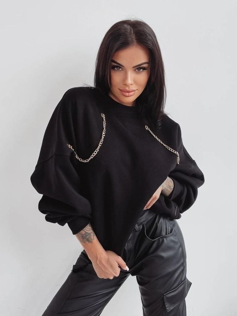 Kadın Uzun Kollu Zincir Detay Iki Iplik Bluz
