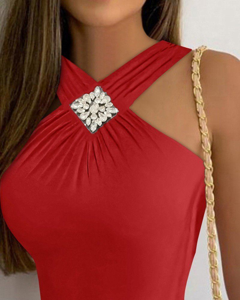 Kadın Yakası önden çaprazlı Taş Detaylı Viskon Bluz