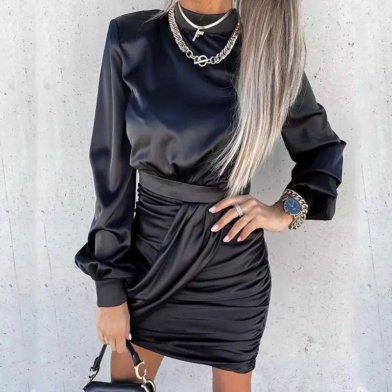 Kadın Yarım Balıkçı Yaka Vatka Ve Büzgü Detay Mini Elbise