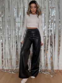 Kadın Yılbaşı özel Yüksek Bel Beli Lastikli Geniş Paçalı Deri Pantolon