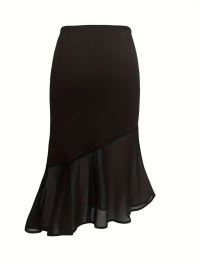 Kadın Yüksek Bel Asimetrik Detaylı Ithal Krep Etek
