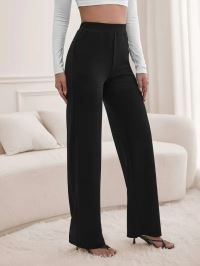 Kadın Yüksek Bel Cepli Geniş Kesim Ithal Krep Pantolon