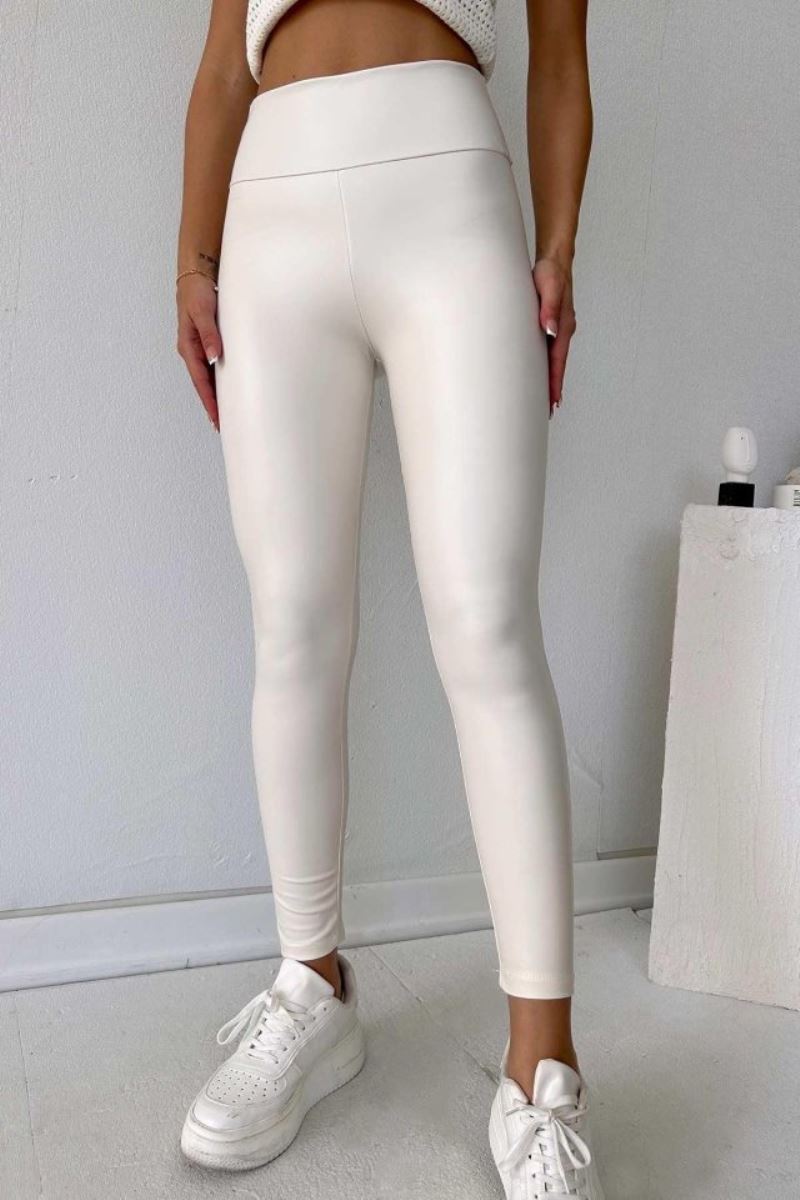 Kadın Yüksek Bel şardonlu Full Likralı Mat Deri Tayt