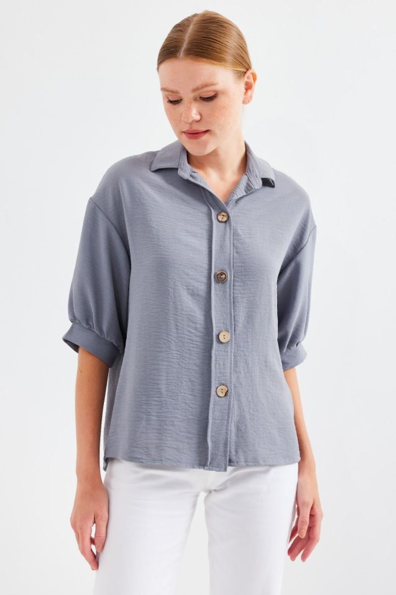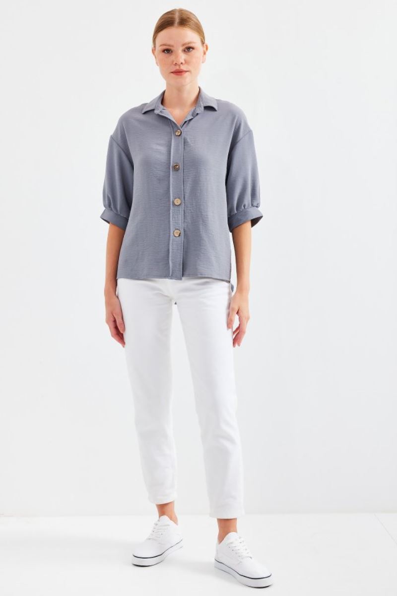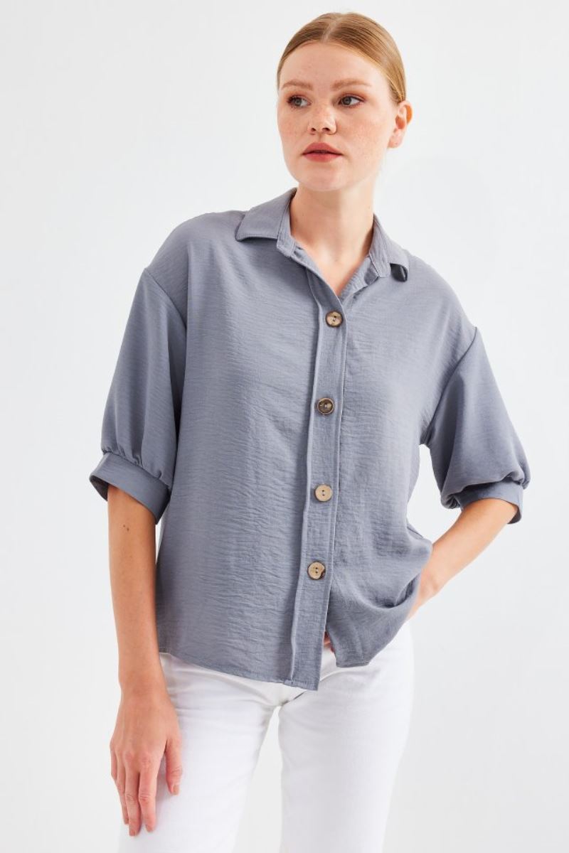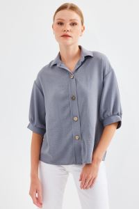 Kısa Kol Oversize Keten Gömlek 20240 - Gri