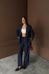 Lacivert Çizgili Ceket Ve Pantolon Takım