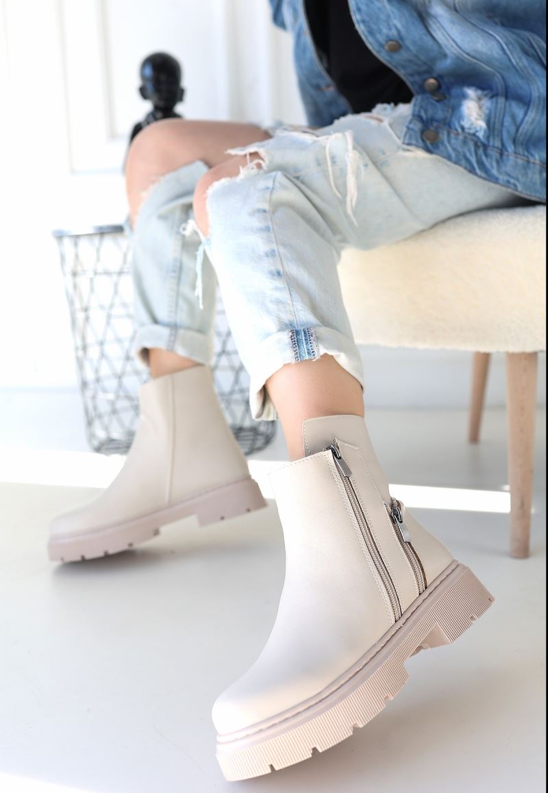 Detay : Topuklu Yandan Fermuarlı Bağcıklı Bot