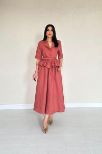 Moccah İnce Kemerli Fırfırlı Ceket Ve Büzgülü Etek Takım