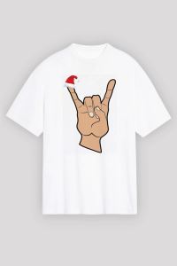 Noel Başlıklı Serçe Parmak T-shirt - Beyaz