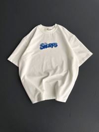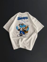 Ön Ve Arka Baskılı Oversize Bisiklet Yaka T-shirt- Beyaz
