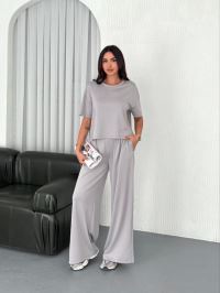 Osy Modal Yumuşak Dokulu Kumaş Bisiklet Yaka T-shirt Bol Paça Pantalon Ikili Takım - Boyalı Gri