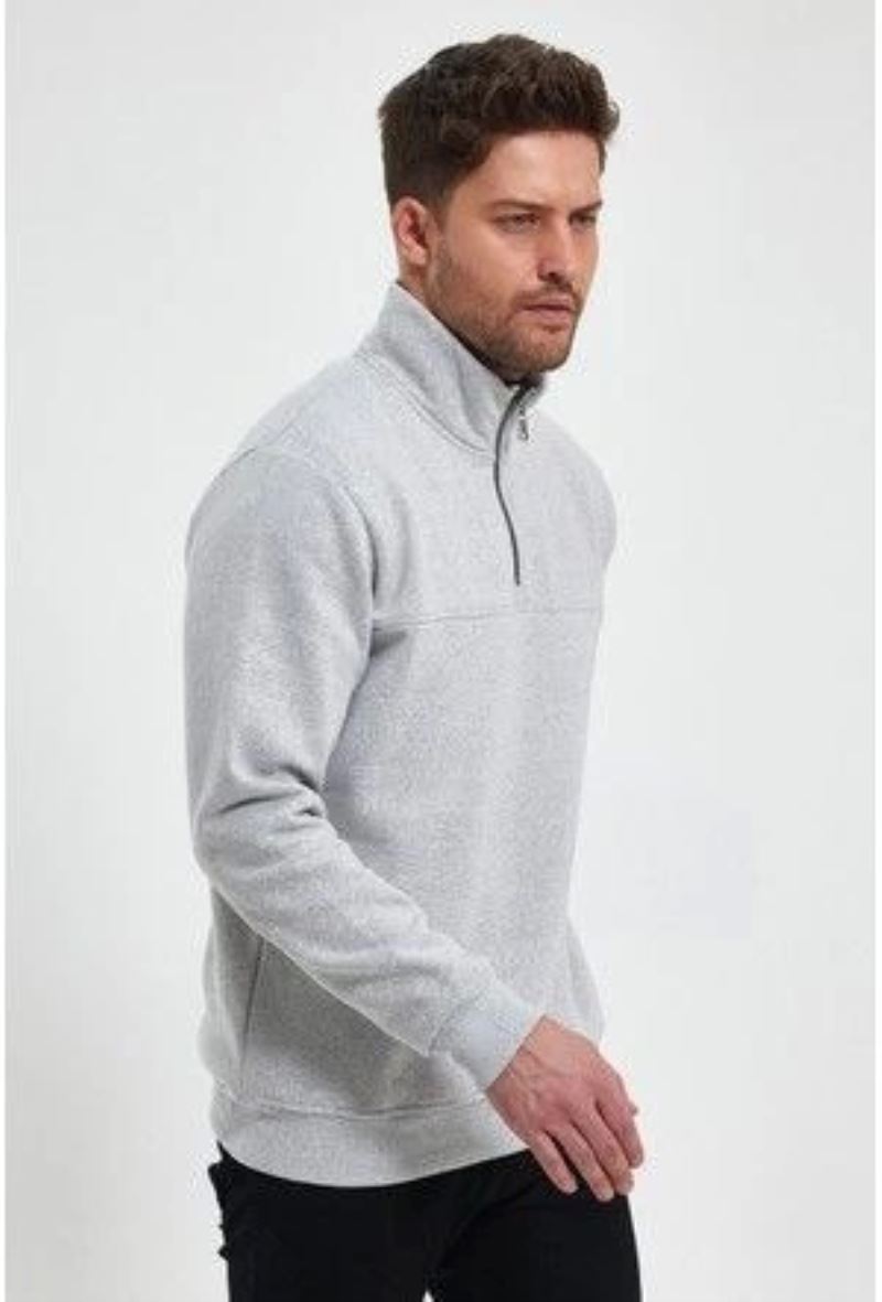 Oversize Yarım Farmuarlı Yakalı Basic SweatShirt - Gri