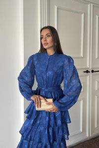Saks Valonlu Şeritli Kat Kat Elbise