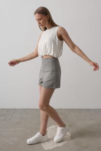 Saten Kolsuz Belki Lastikli Bluz - Ekru