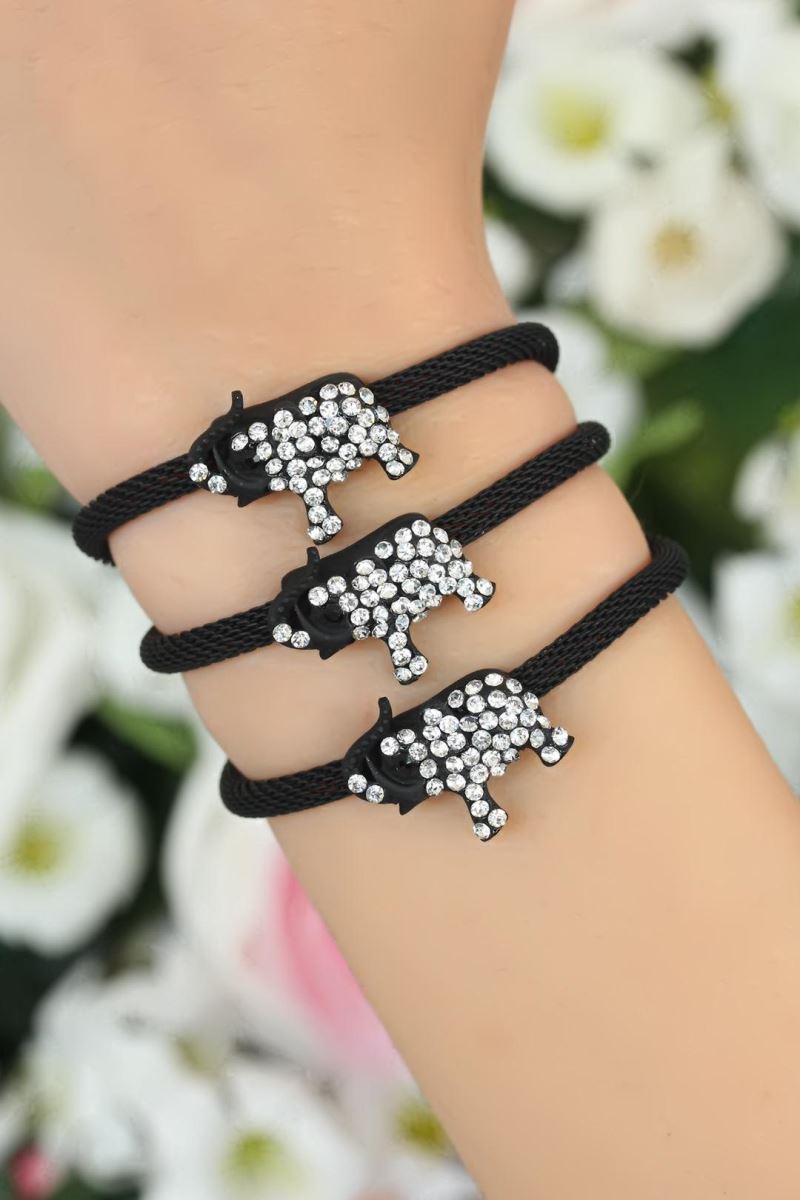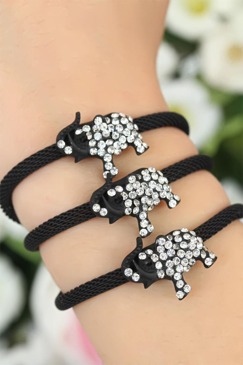 Zarif şıklığınıza Siyah Zirkon Taşlı Fil Aksesuarlı Metal Bayan Bileklik ile farklı bir hava katacaksınız.