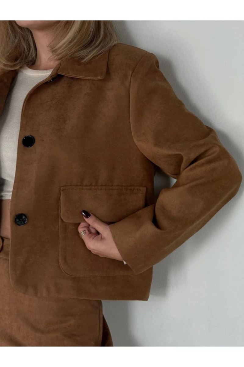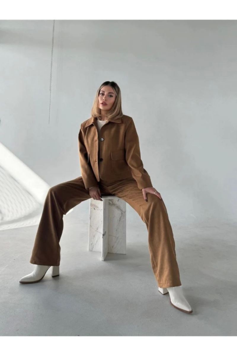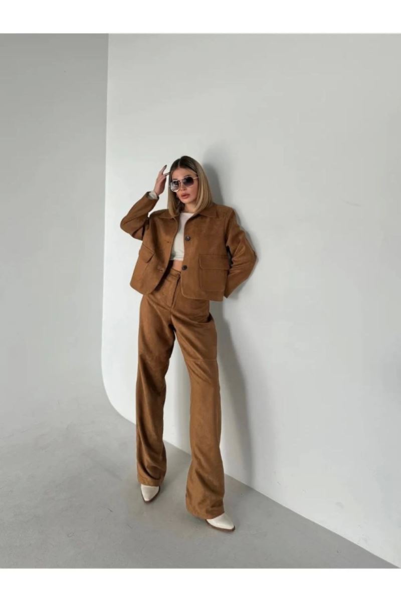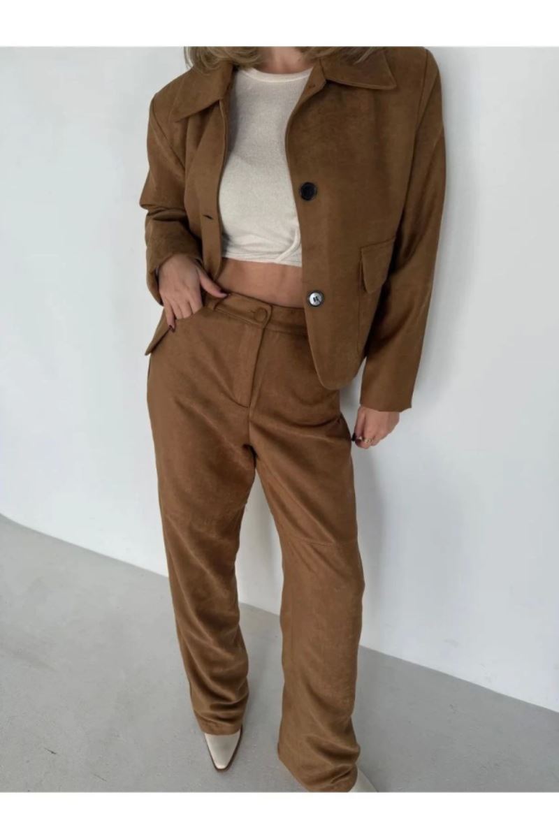 Süet Ceket Palazzo Pantolon İkili Takım - Kahve