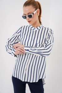 Uzun Kollu Çizgili Gömlek 20283 - B.Lacivert