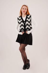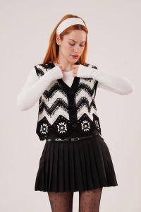 Zikzak Geçişli Triko Örme Siyah Yelek